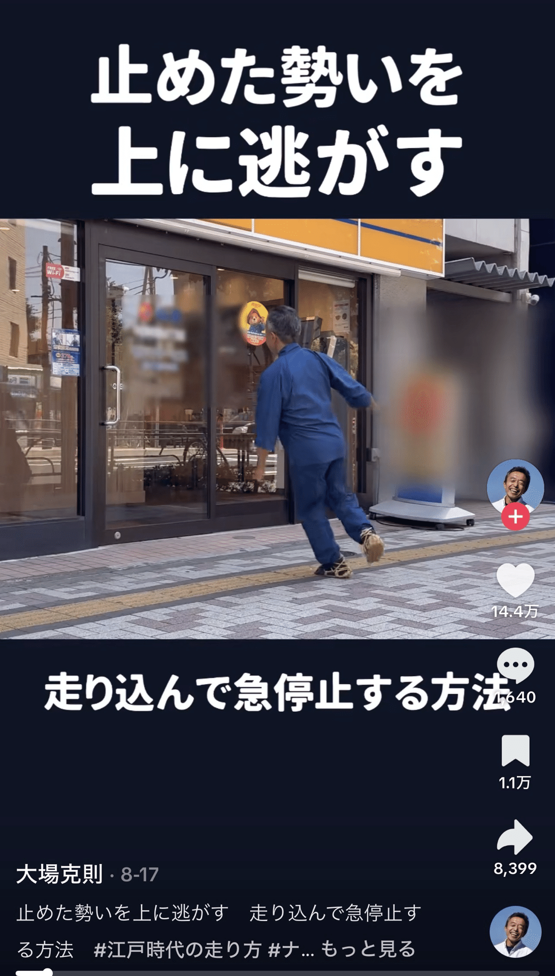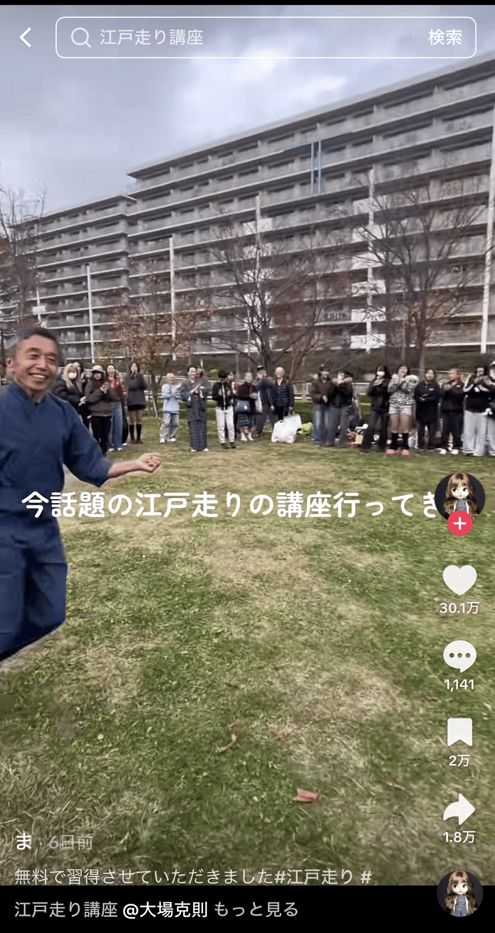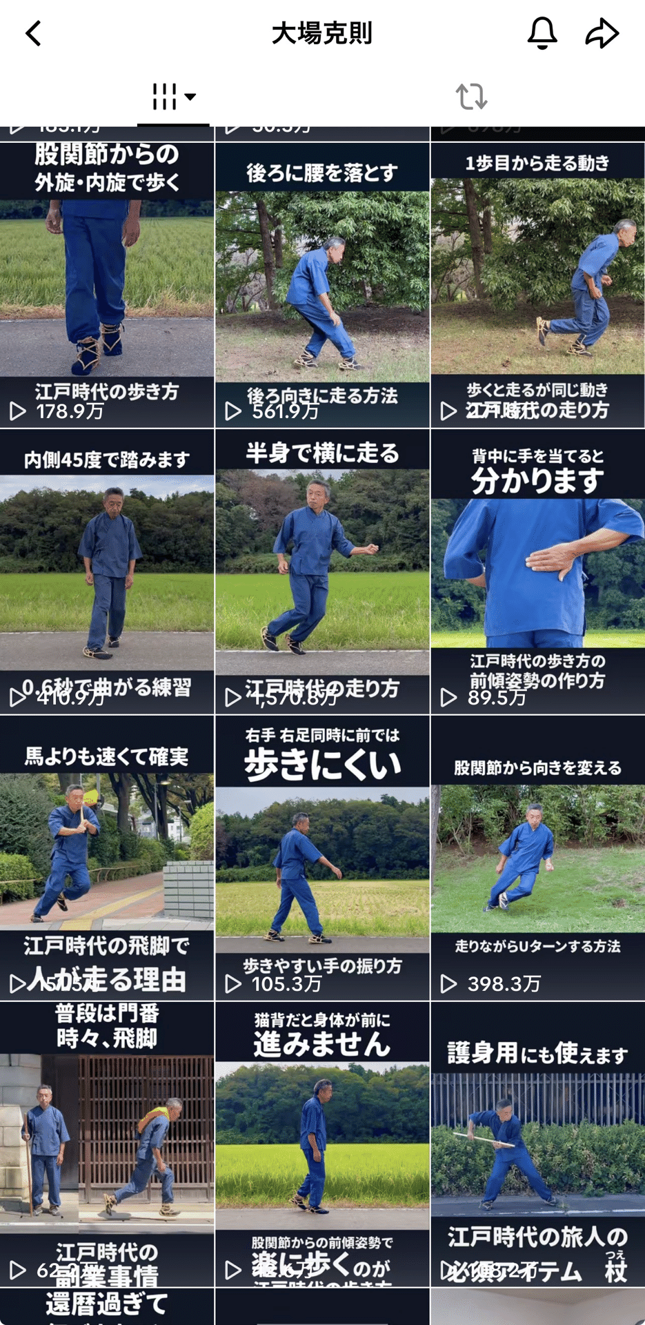 このトレンドの生みの親は江戸時代の走り方を10年間研究する大場克則さん。この動画だけでも1500万再生を記録しています。