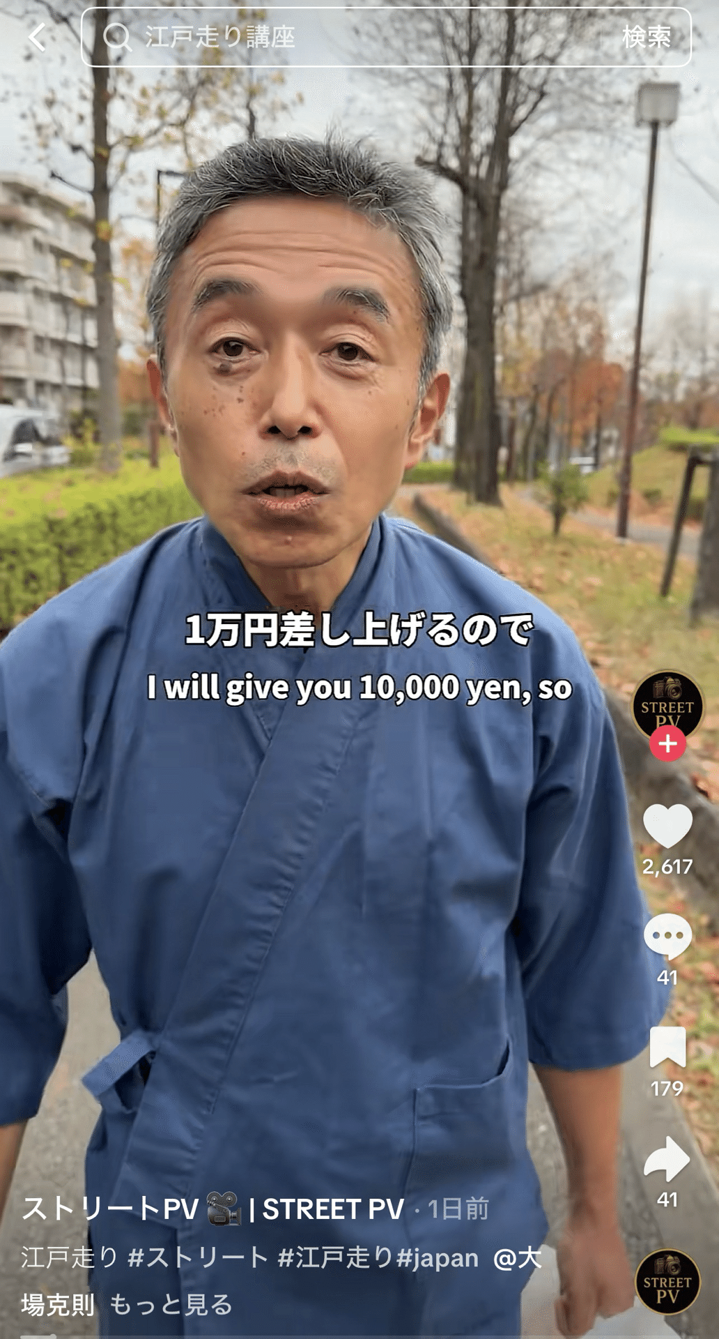 最近では、ご本人が主催している江戸走り講座というものが開かれておりこの様子を投稿した動画も400万再生を記録するなど各地で江戸走り現象が巻き起こっています。