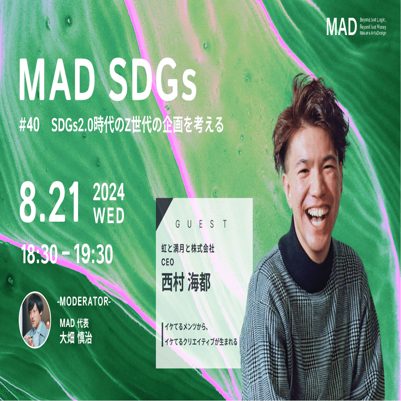 MADは、今注⽬するSDGs・サステナブルプレーヤーをお招きして、具体的な挑戦・実⾏・実現のリアルを紐解いていく番組で、40回目となる今回は「SDGs2.0時代のZ世代の企画を考える」というテーマでSDGs×Z世代でトークを展開しました。